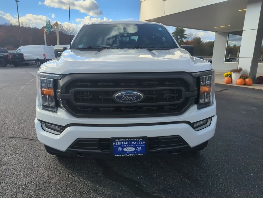 NAVIGATION SYSTEM, BACKUP CAMERA, BLUETOOTH, HEATED SEATS, SYNC, SMARTPHONE INTEGRATION, TOUCH SCREEN, AUTOMATIC HEADLIGHTS, PUSH BUTTON START, BLIND SPOT MONITOR, ONE OWNER, SHOWROOM READY, 4WD, 10-Way Power Driver & Passenger Seats, 8" Productivity Screen in Instrument Cluster, Accent-Color Step Bars, Bed Utility Package, Black 2-Bar Style Grille w/Black Surround/Accents, Body-Color Door & Tailgate Handles, Body-Color Front & Rear Bumpers, Box Side Decals, BoxLink, Chrome Single-Tip Exhaust, Class IV Trailer Hitch Receiver, Dual Zone Electronic Automatic Temperature Control, Equipment Group 302A High, Heated Front Seats, Intelligent Access w/Push Button Start, Leather-Wrapped Steering Wheel, LED Box Lighting, LED Reflector Headlamps, LED Sideview Mirror Spotlights, Navigation System, Onboard 400W Outlet, Power Glass Heated Sideview Mirrors, Rear Under-Seat Storage, Remote Start System w/Remote Tailgate Release, SYNC 4 w/Enhanced Voice Recognition, Tailgate Step w/Tailgate Work Surface, Unique Sport Cloth 40/Console/40 Front-Seats, Wheels: 18" 6-Spoke Machined Aluminum, XLT Chrome Appearance Package, XLT Sport Appearance Package, Zone Lighting. Oxford White 2022 Ford F-150 XLT 4WD 10-Speed Automatic 5.0L V8